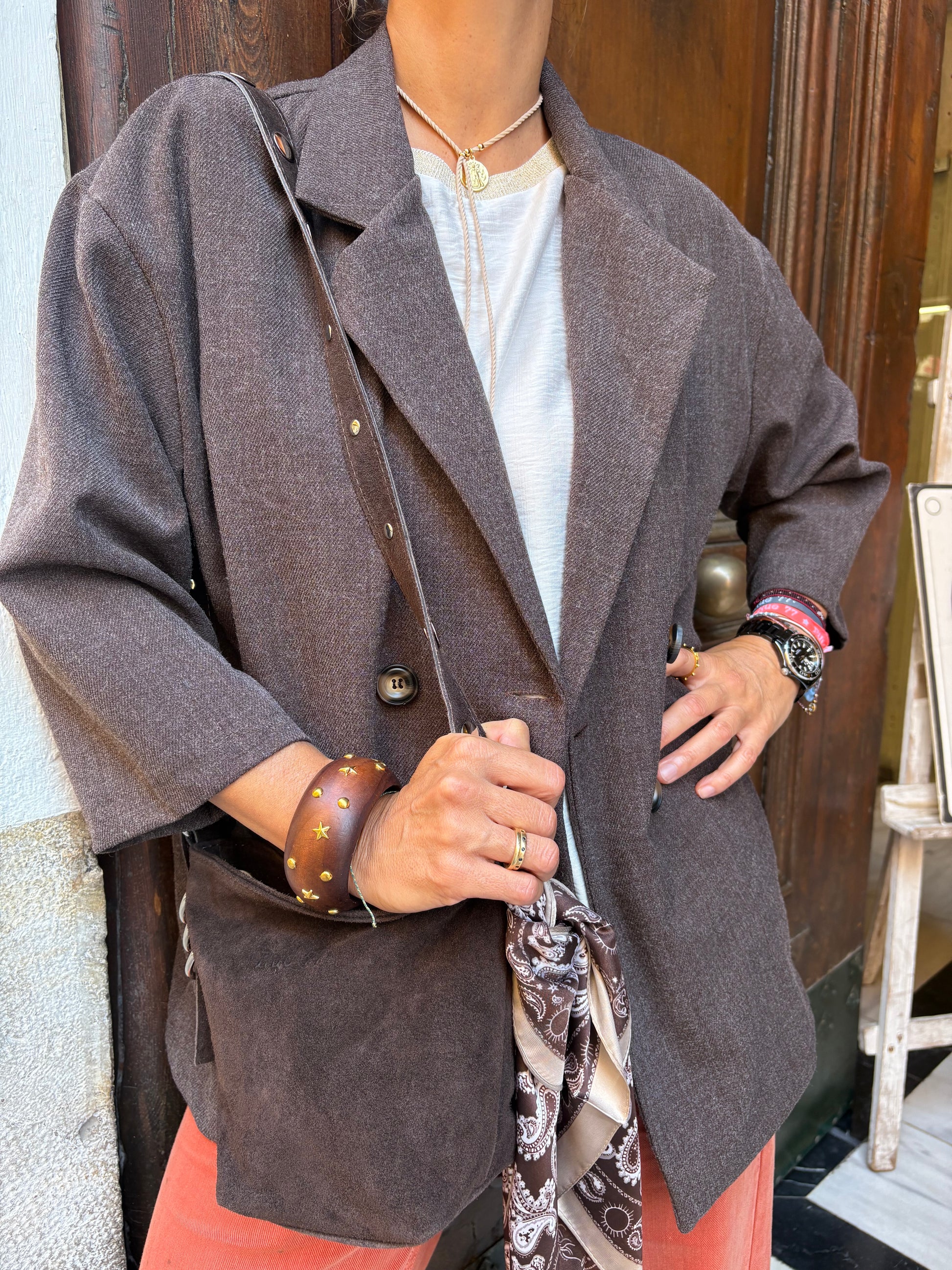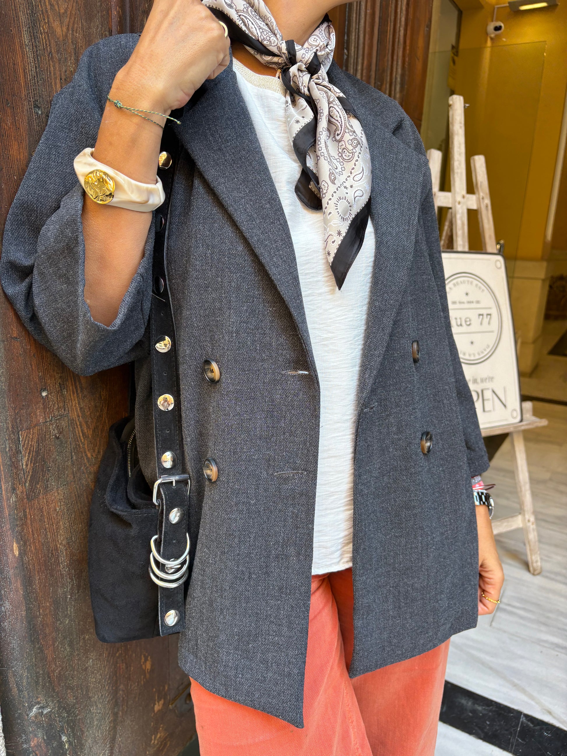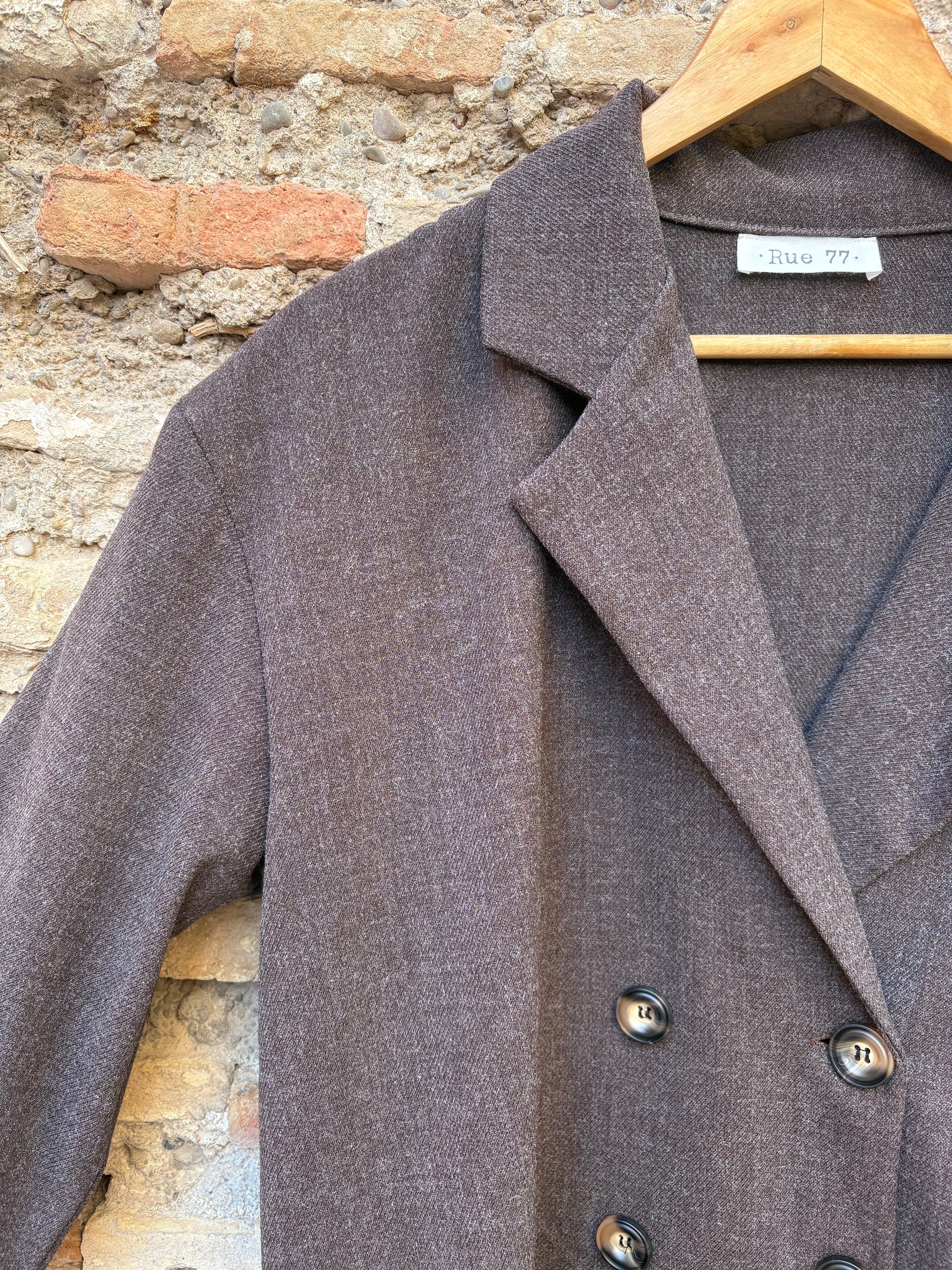 Chaqueta tres cuartos cruzada 4 botones de paño.