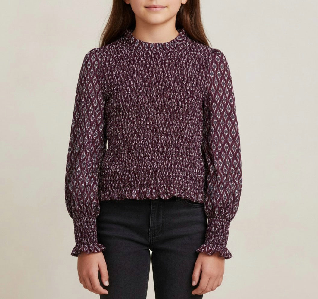 Camisa de gasa fruncida estampada