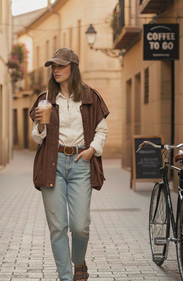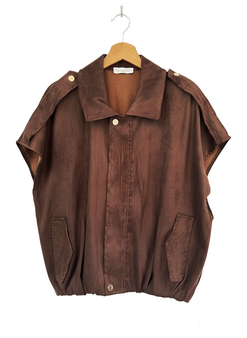 Chaleco de antelina color marrón chocolate.