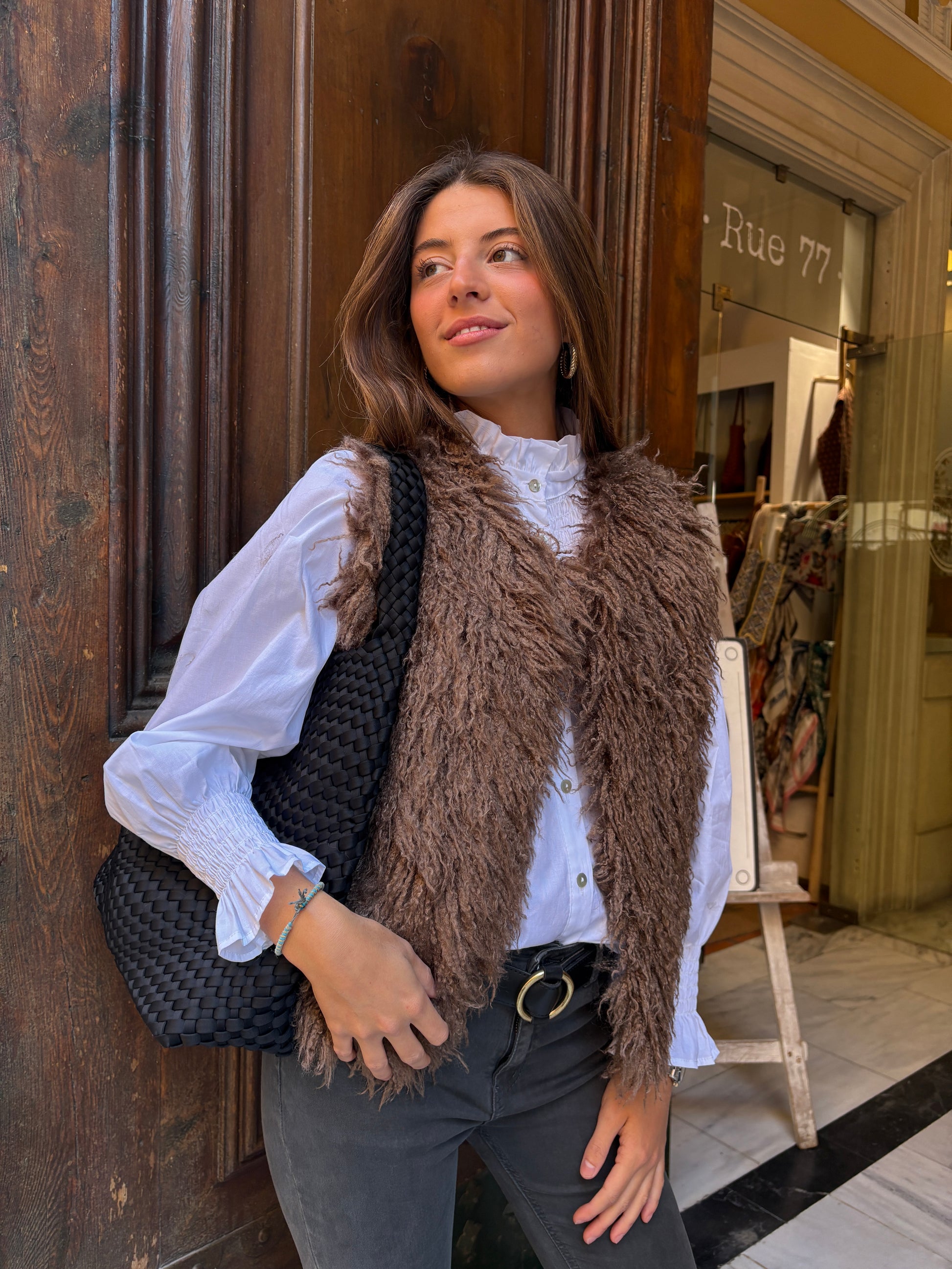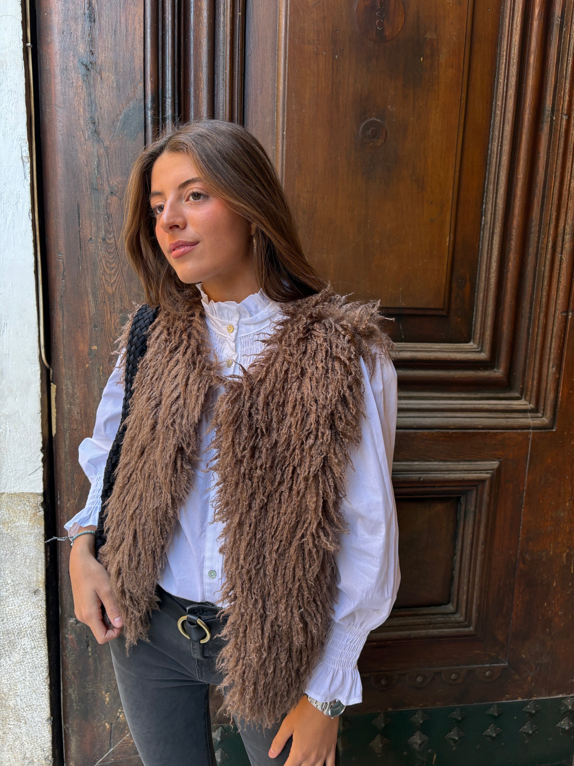 Chaleco de pelo largo color visón