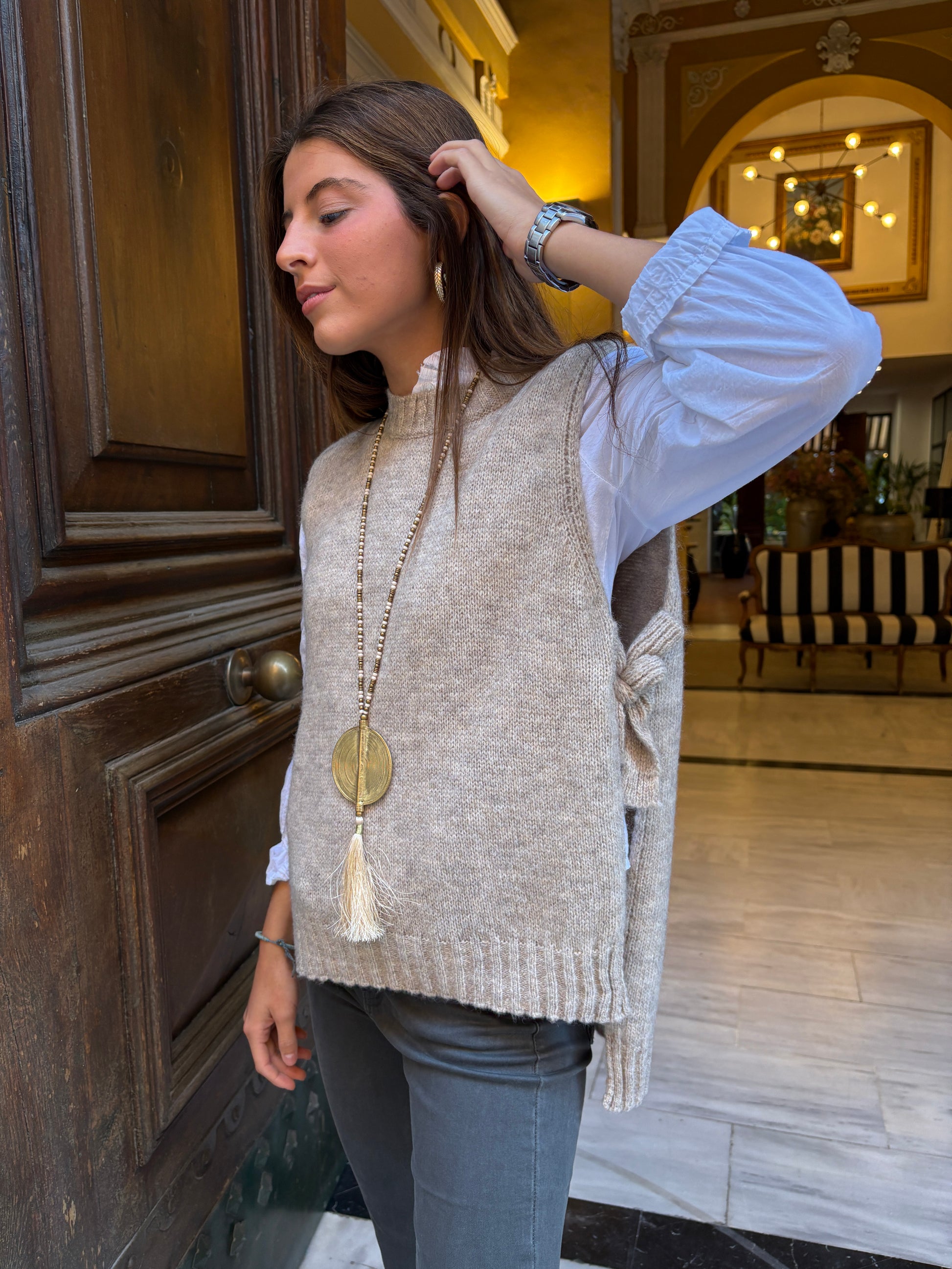 Chaleco lana lazos a los lados