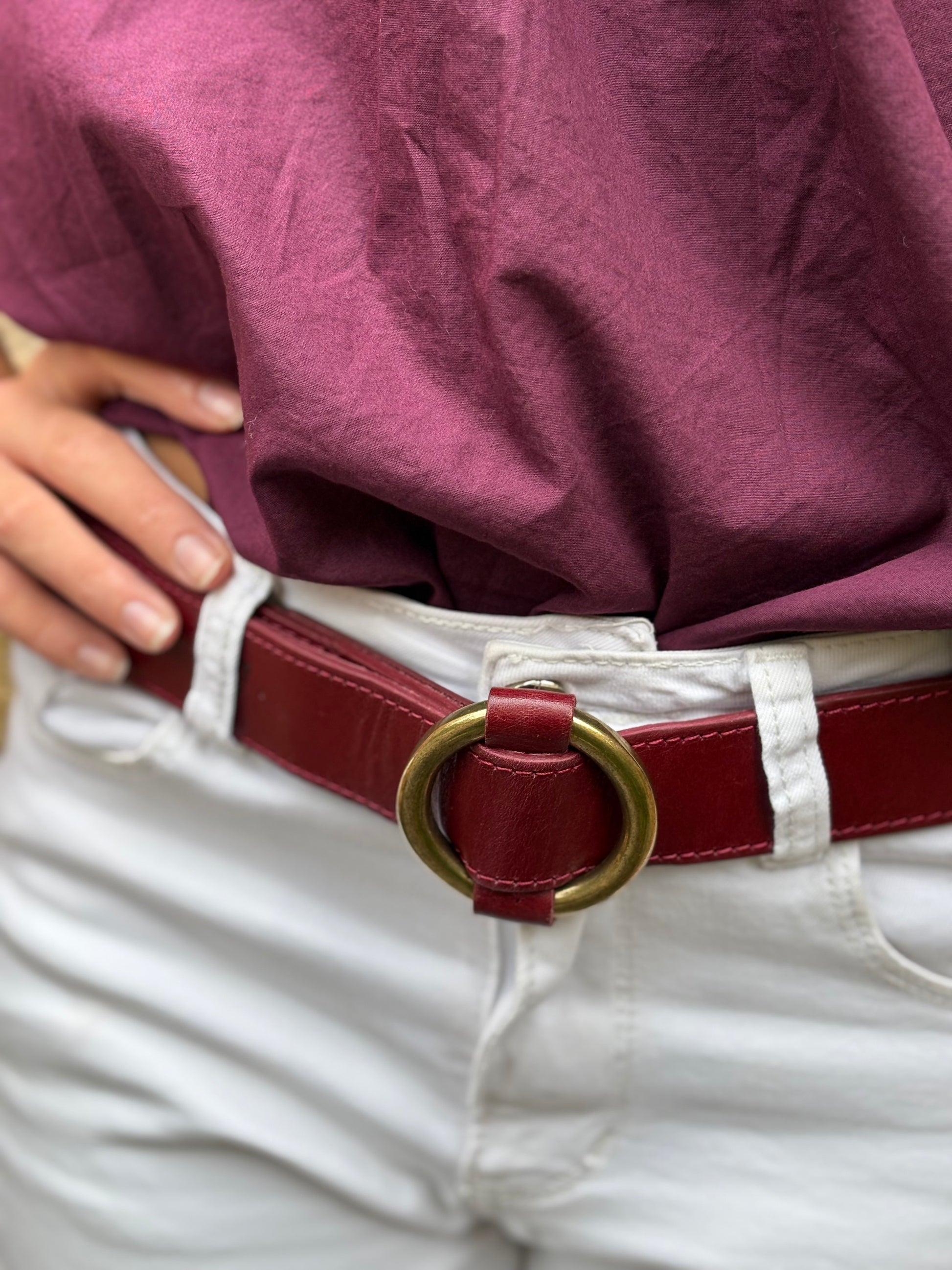 Cinturón de piel color cereza