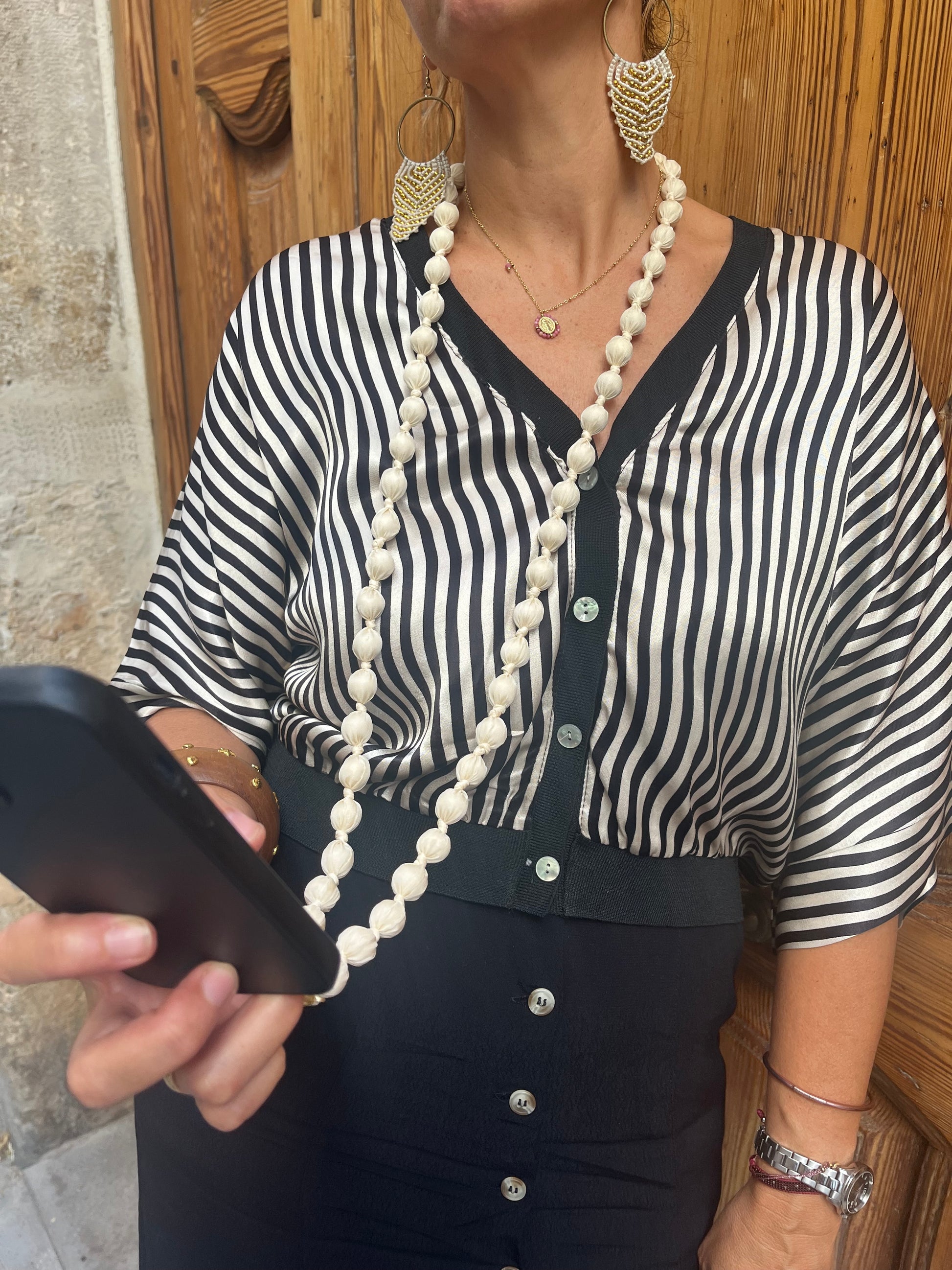 Colgador / Collar de bolitas de raso en diferentes tonos.