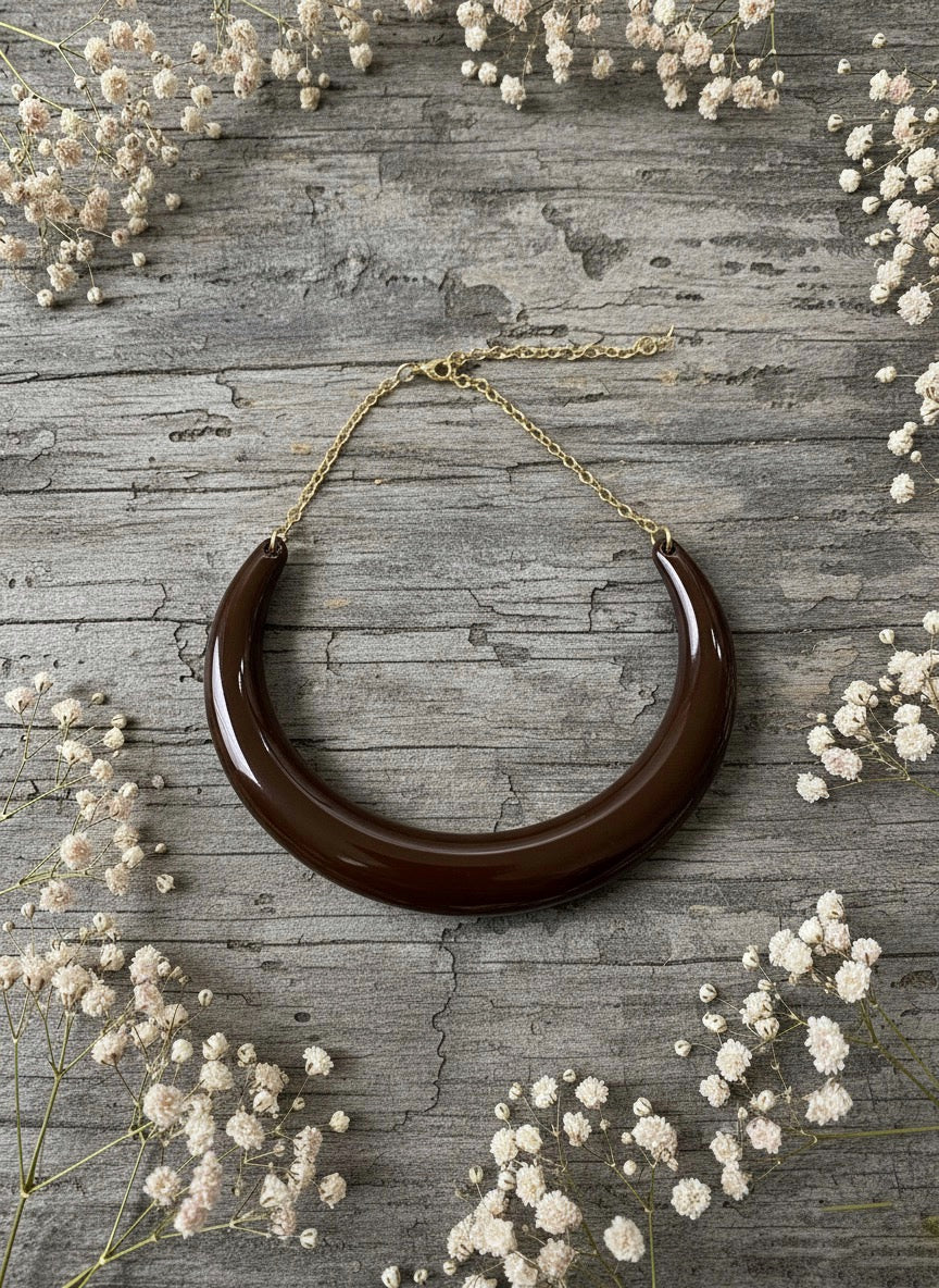 Collar con forma de cierno que se ajusta con cadena de bronce.