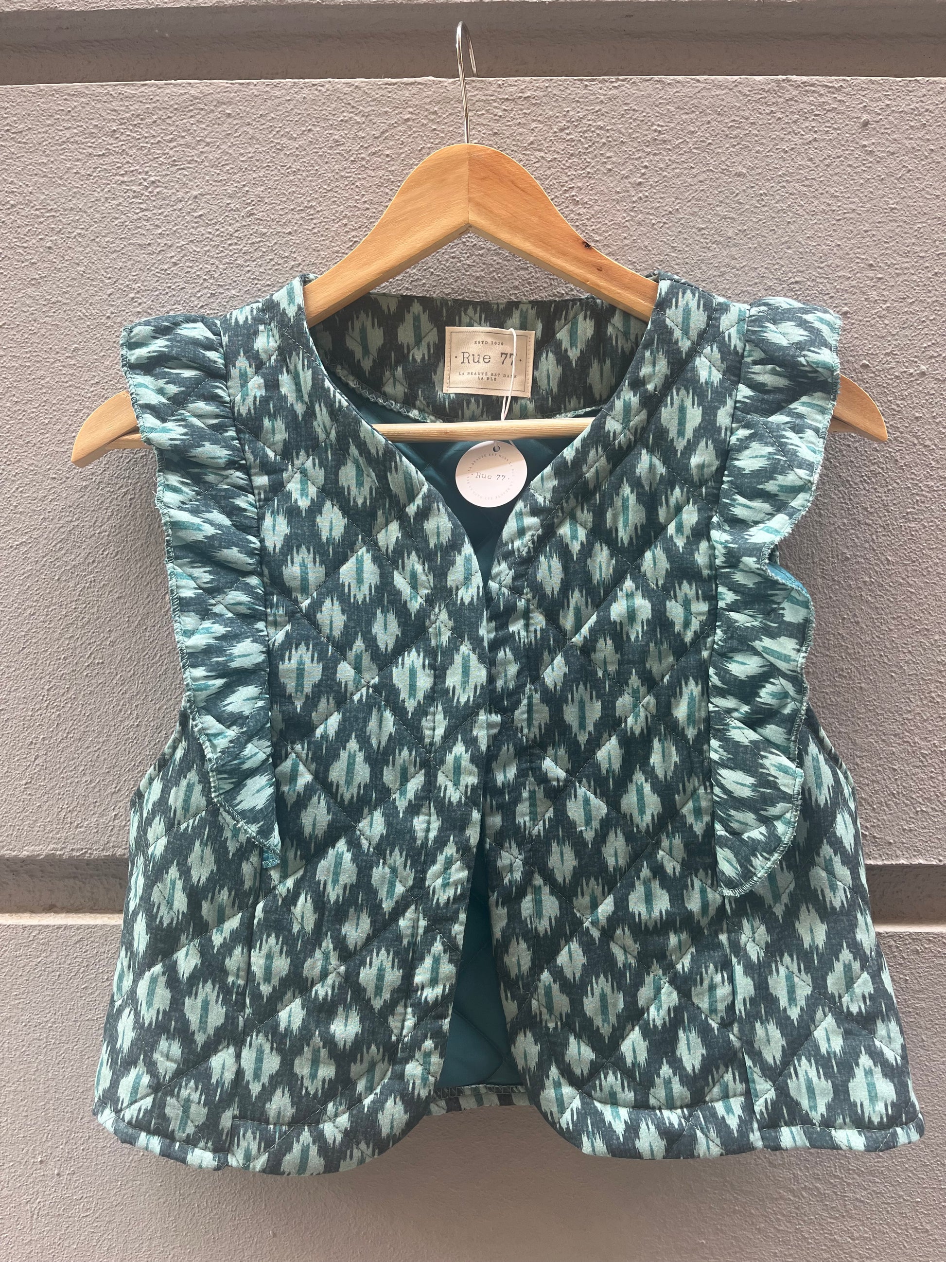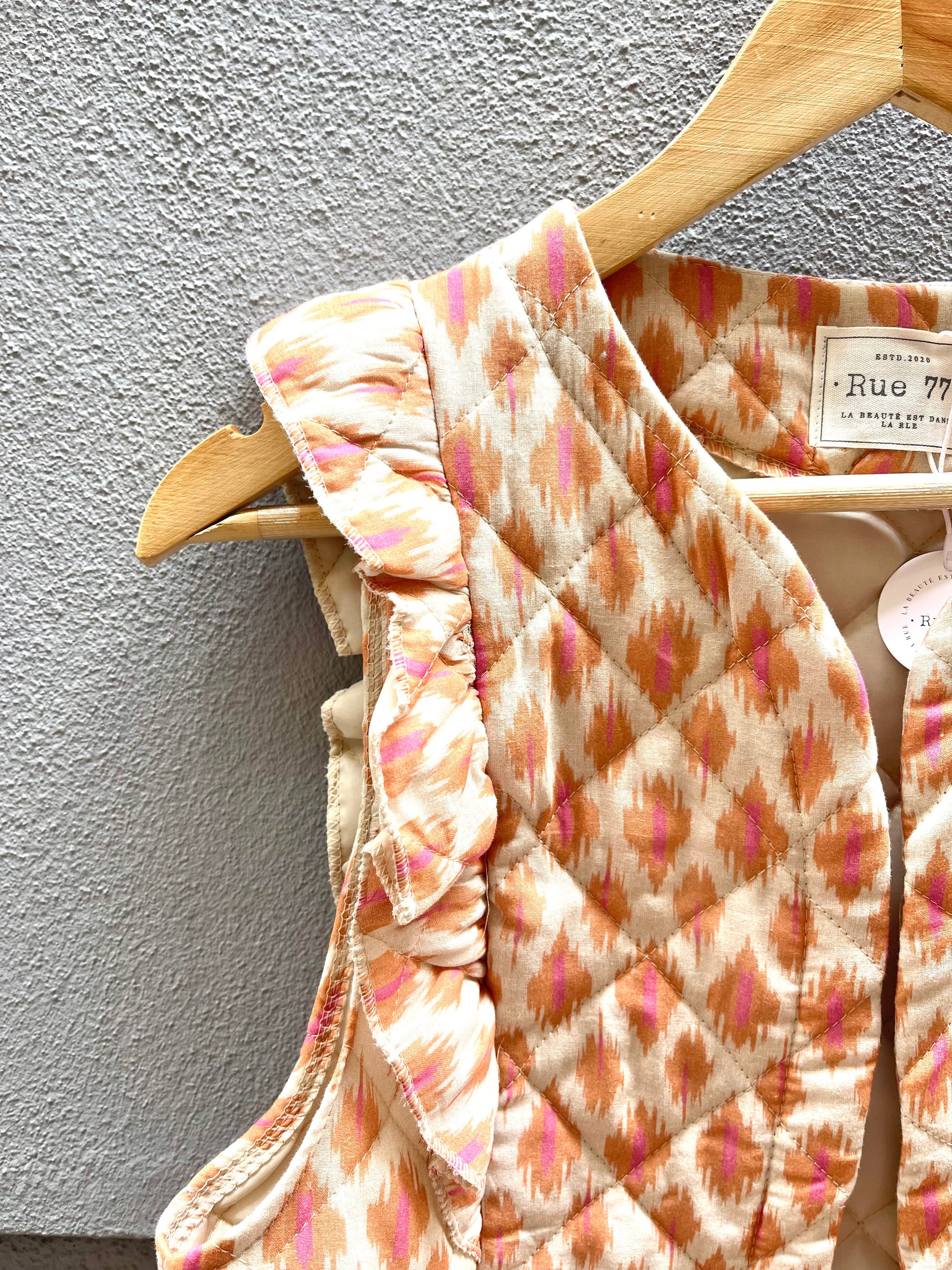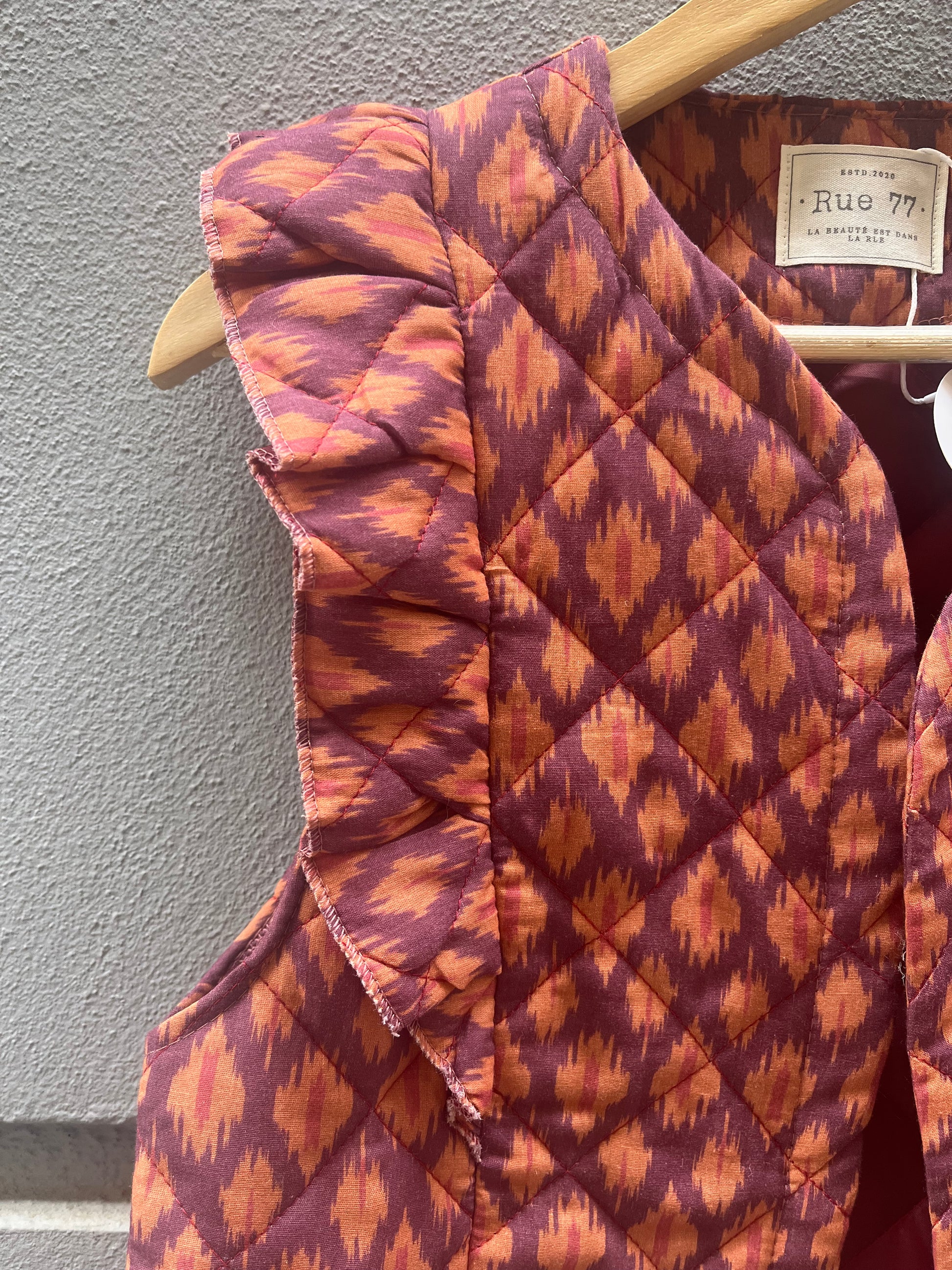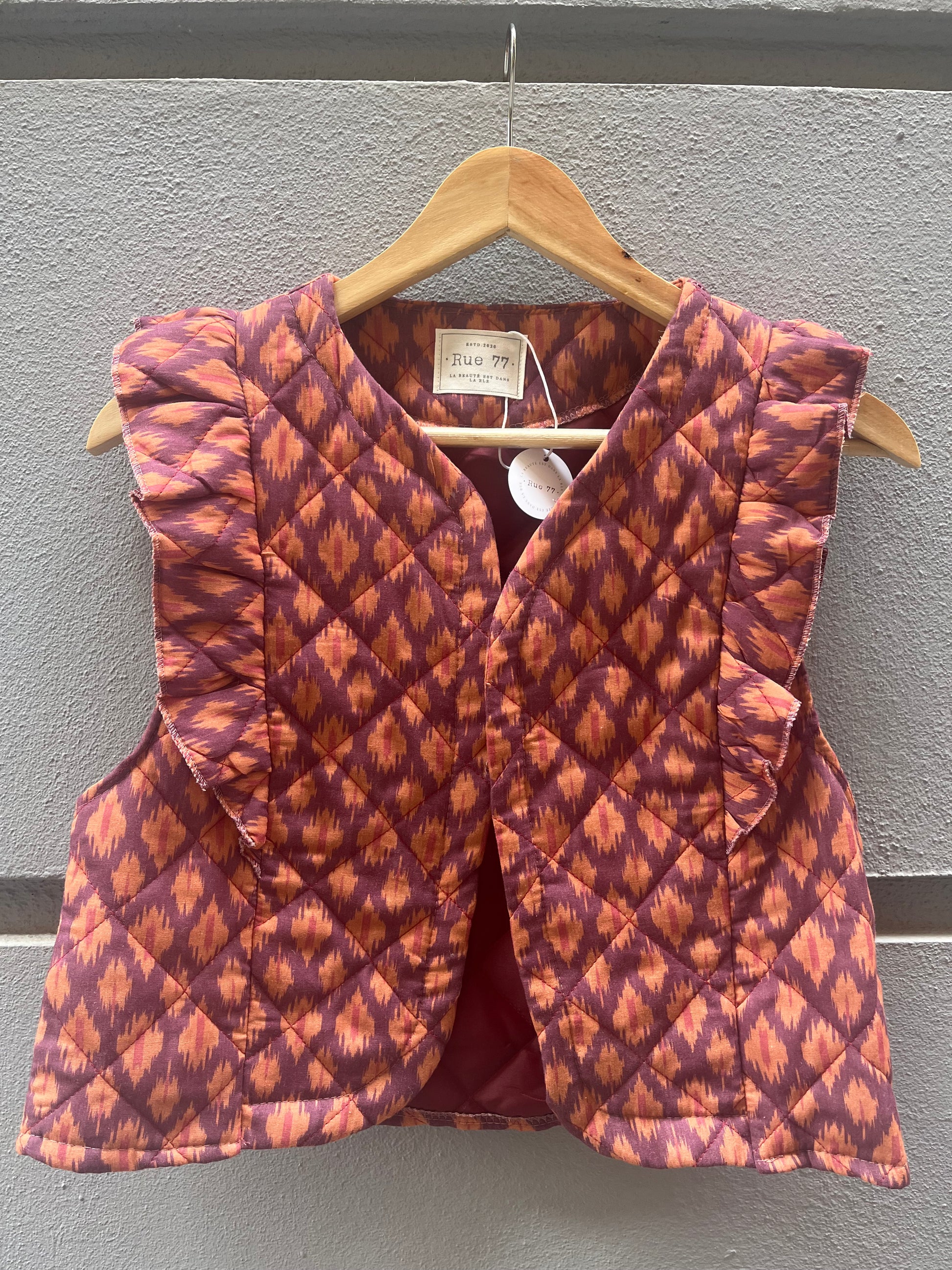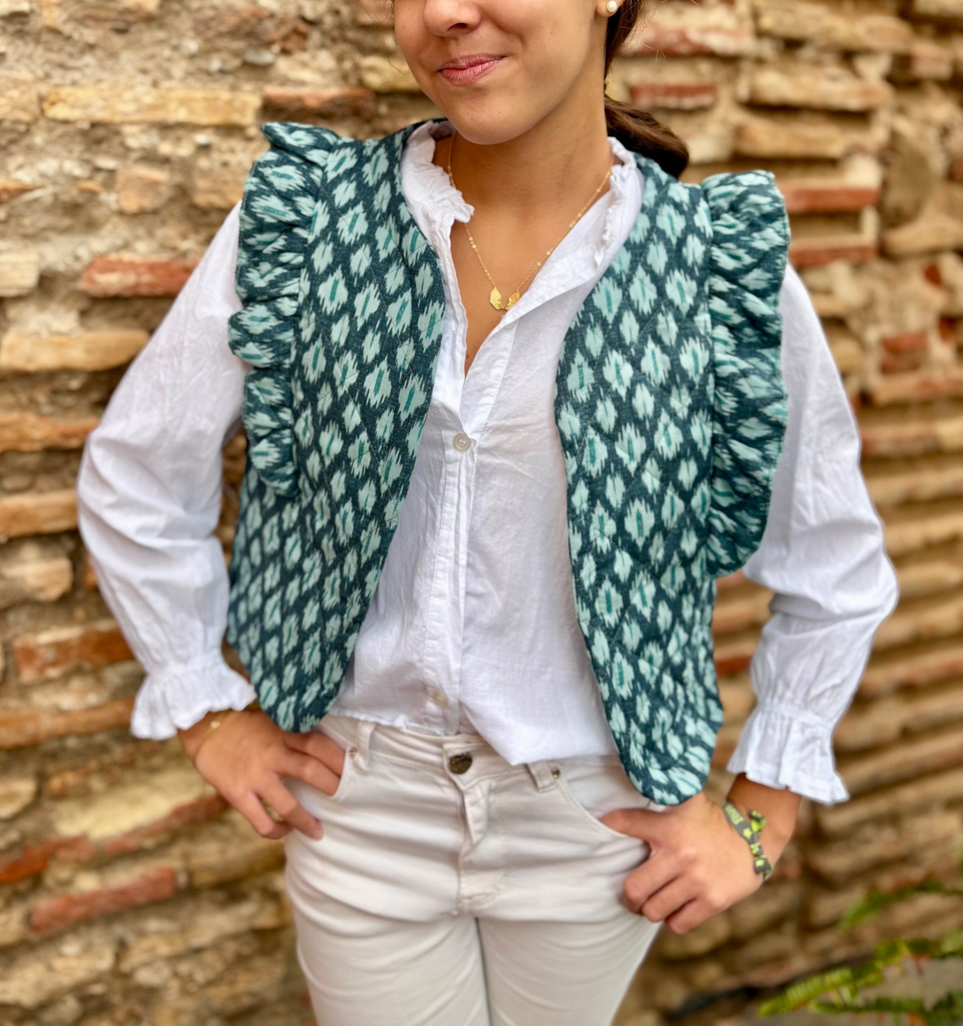 Chaleco estampado en lenguas menorquinas con volante en la manga.