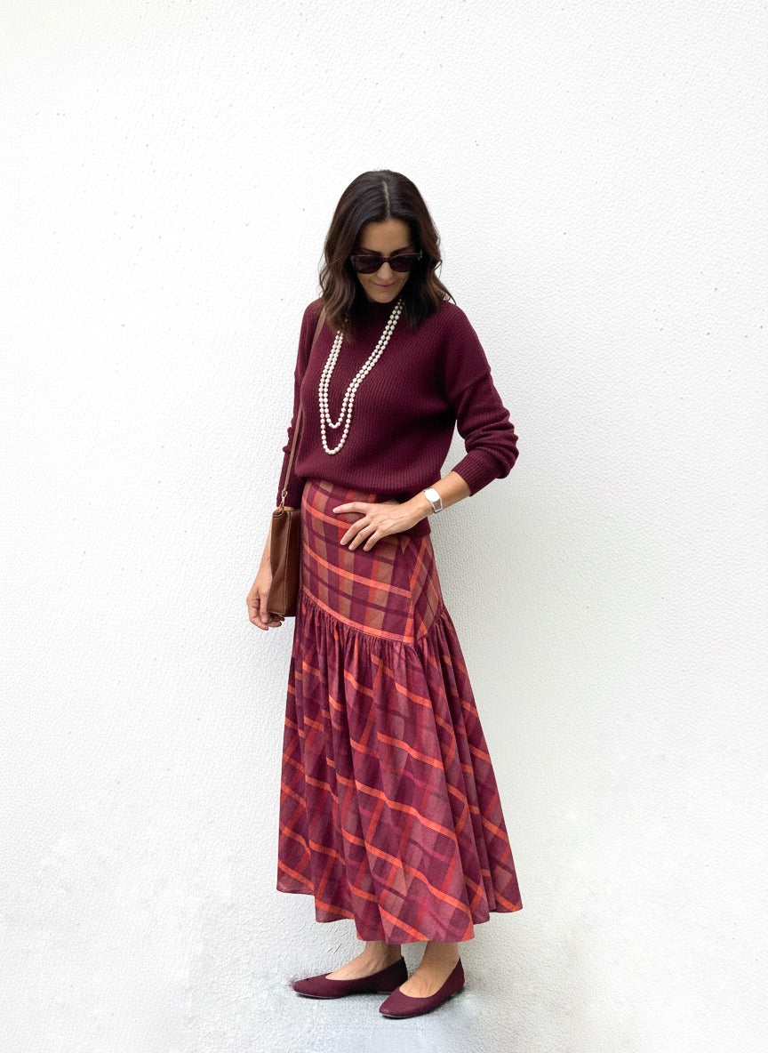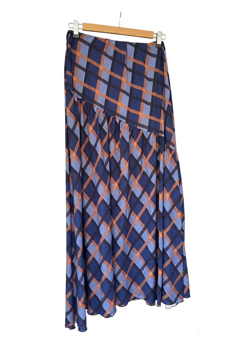 Falda de cuadros con corte diagonal