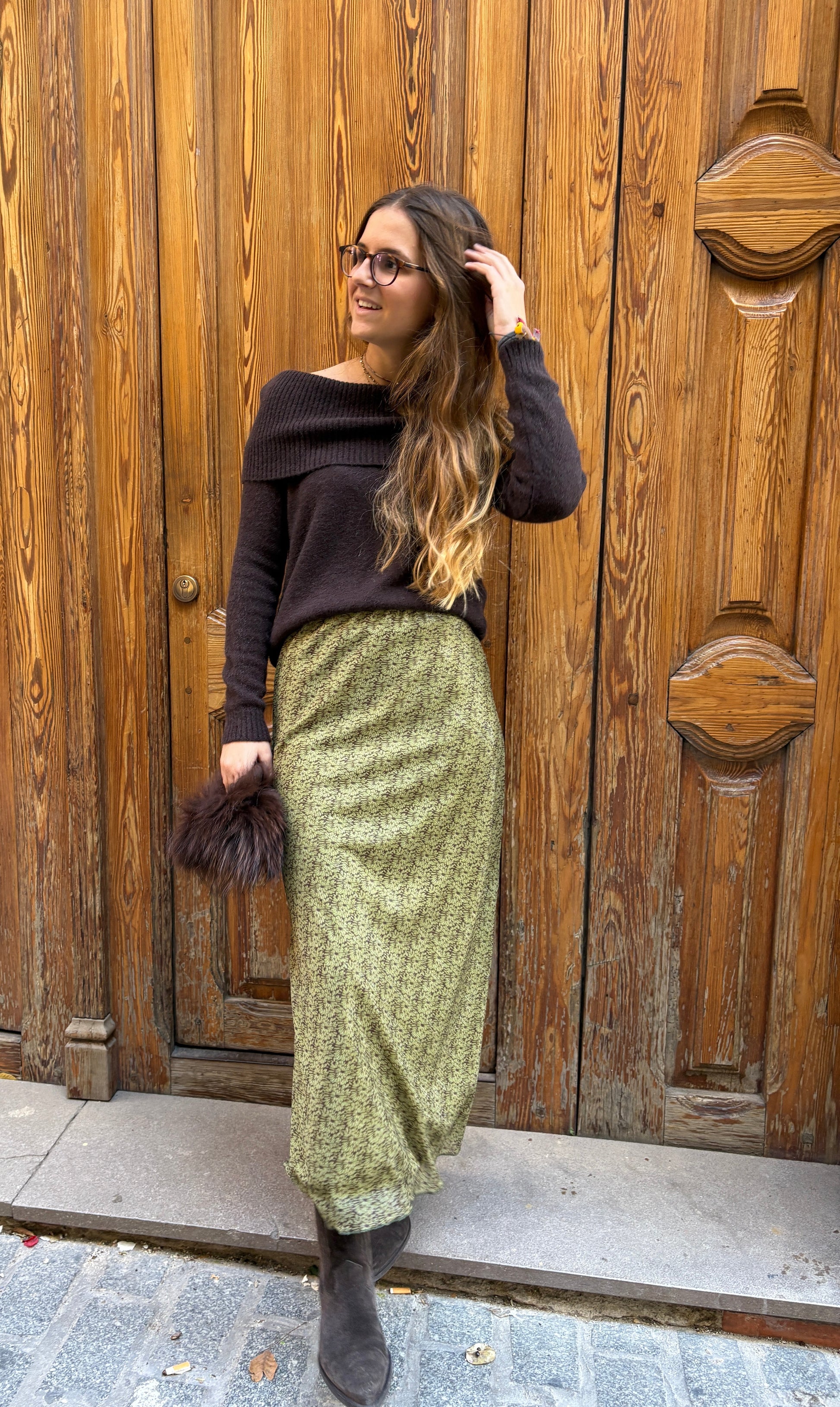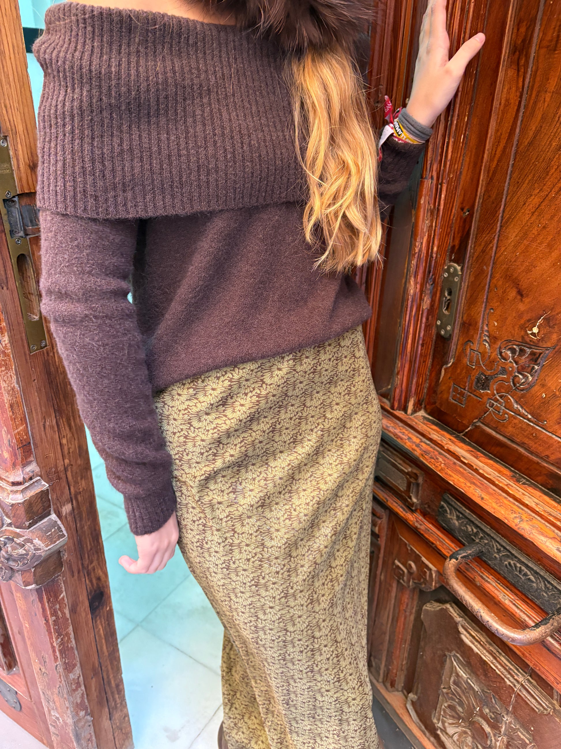 Falda de gasa larga en estampado en tonos marrón. El estampado exacto se muestra en la imagen 2.