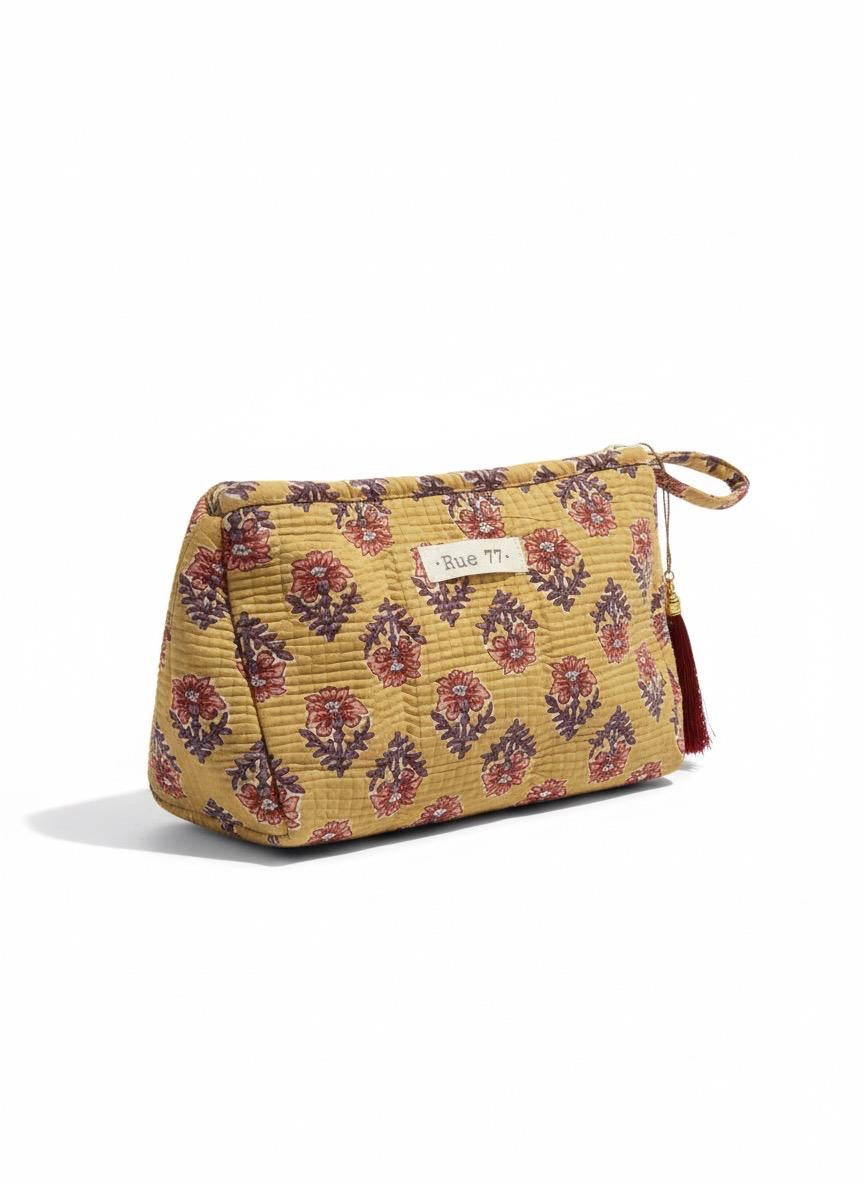 Neceser de algodón estampado en block print de la India. Plastificado en su interior.