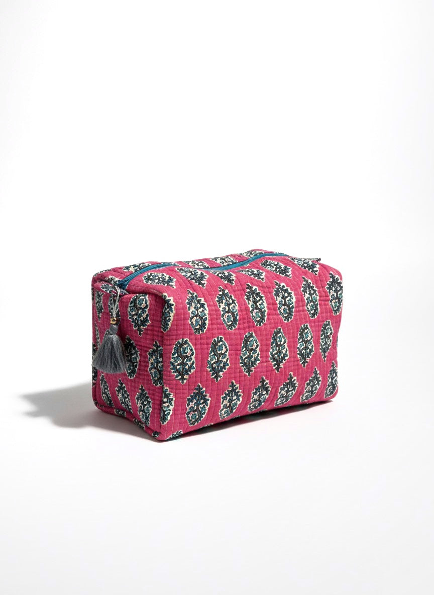 Neceser de algodón estampado en block print de la India.