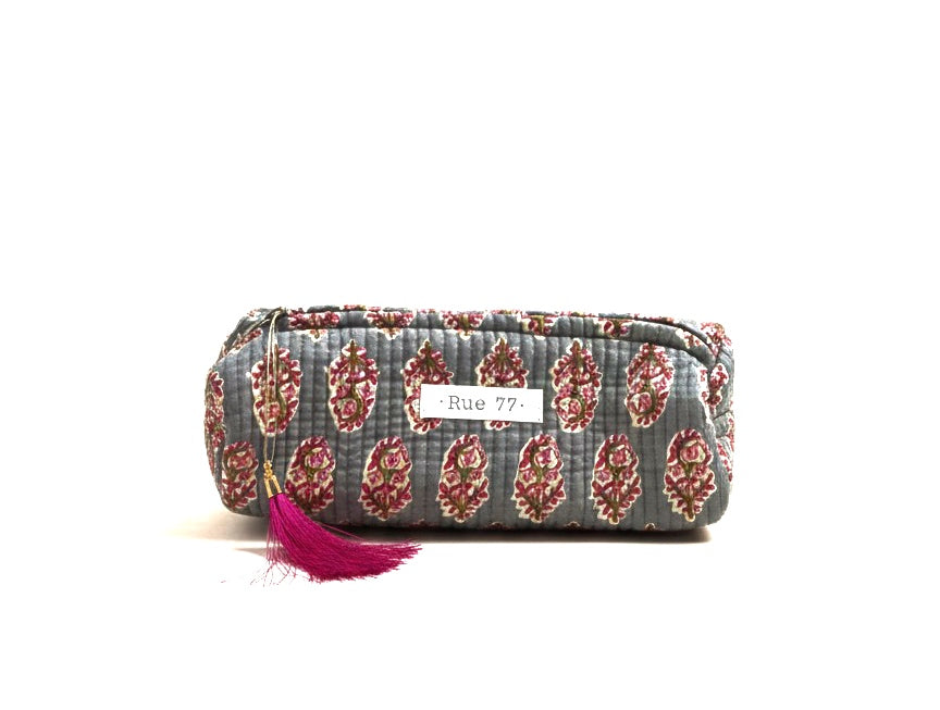 Neceser alargado de algodón estampado en block print de la India.