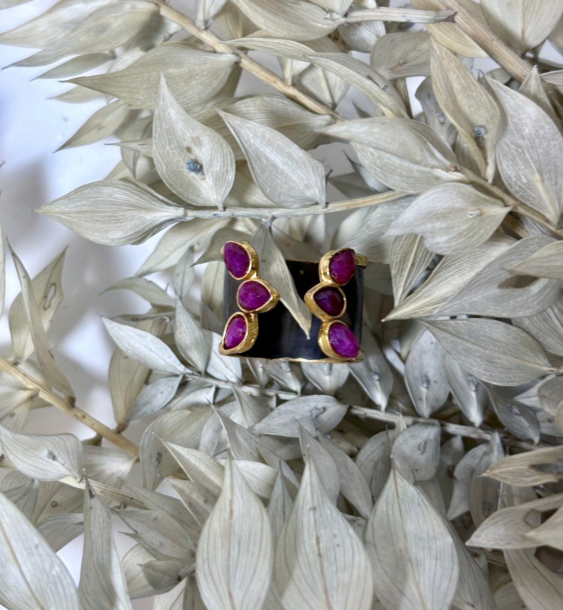 Anillo rígido ajustable con piedras naturales. Cuatro colores, buganvilla, verde jade, verde grisáceo y azul índigo.